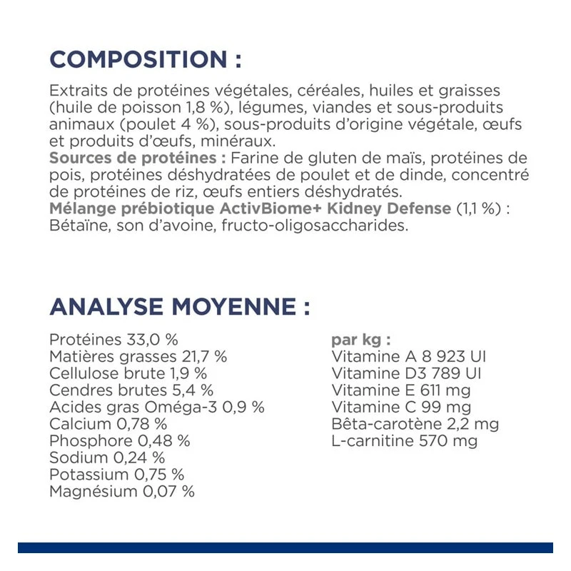 Les croquettes K/D Kidney Early Stage au Poulet sont destinées à la prise en charge nutritionnelle des problèmes cardiaques et rénaux chez le chat. Veuillez consulter votre vétérinaire avant utilisation.