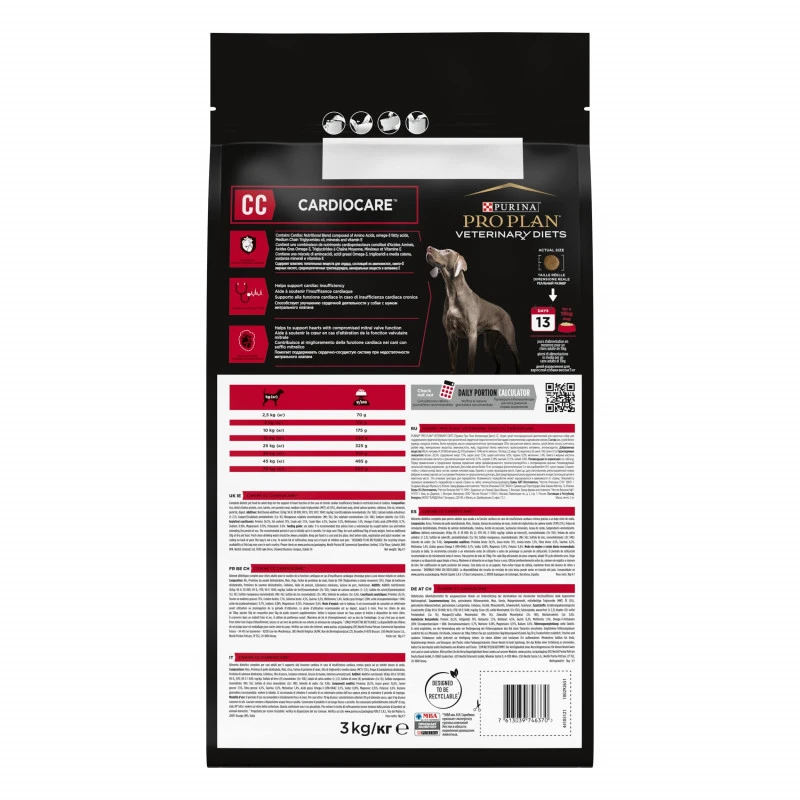 Les croquettes PURINA PRO PLAN VETERINARY DIETS CC CardioCare sont destinées à la prise en charge nutritionnelle des problèmes cardiaques chez le chien adultes ou séniors. Veuillez consulter votre vétérinaire avant utilisation.