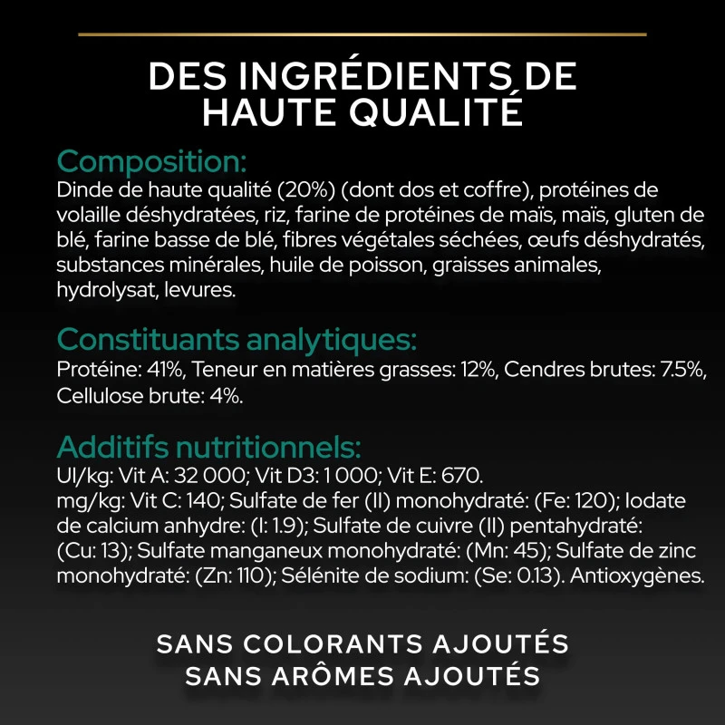 - Fabriquées avec de la Dinde de haute qualité en 1er ingrédient sans colorants ni arômes ajoutés.