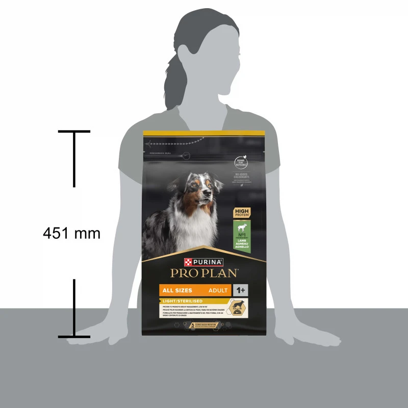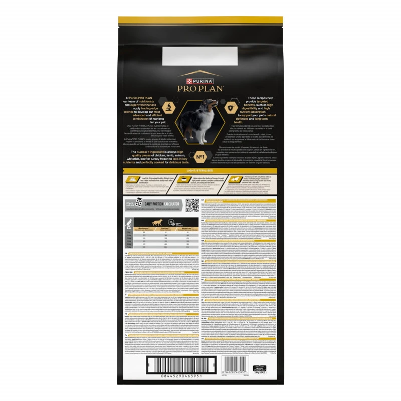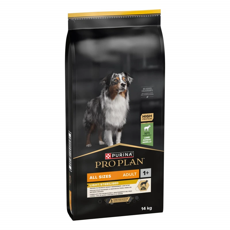 Les croquettes Purina Pro Plan Dog All Size Adult Light/Sterilised sont conçues pour les chiens adultes de toutes tailles qui ont été stérilisés/castrés ou qui ont besoin d’un régime alimentaire allégé en matière grasse.