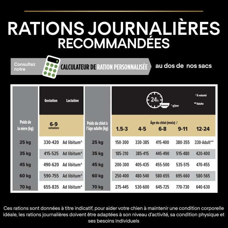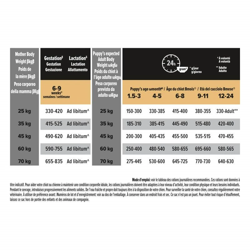 - Cette alimentation répond aux besoins nutritionnels spécifiques des chiots de grande taille en pleine croissance.
