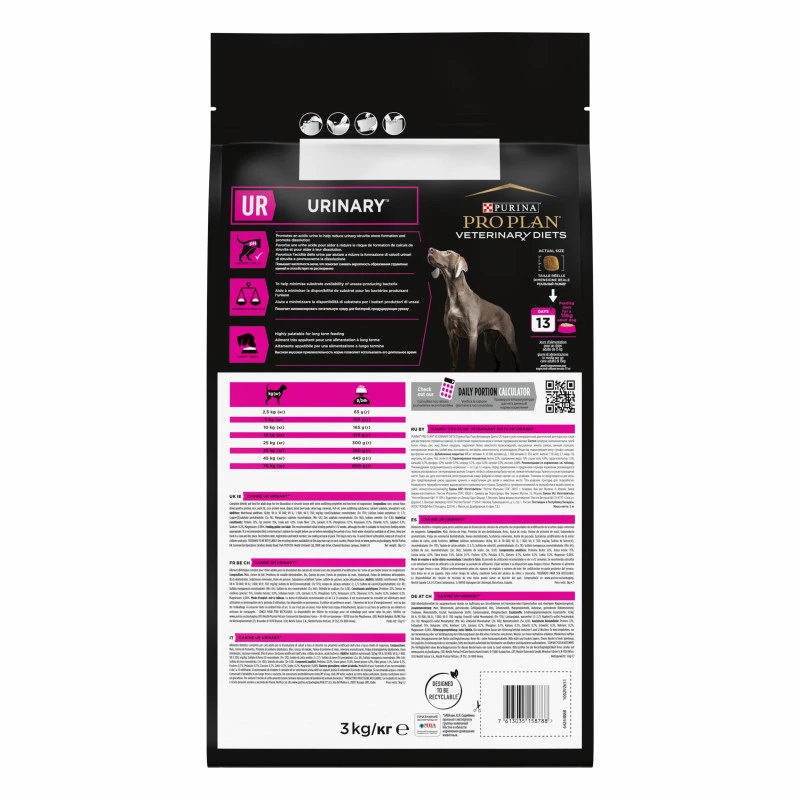 Les croquettes Purina Pro Plan Veterinary Diets UR Urinary sont formulées avec des ingrédients diététiques complets, spécialement formulés pour les chiens souffrant de problèmes urinaires.