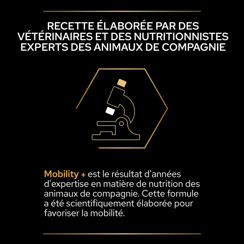 Pro Plan Mobility + pour chien c’est un complément alimentaire pour soutenir la santé articulaire et la mobilité de votre chien.