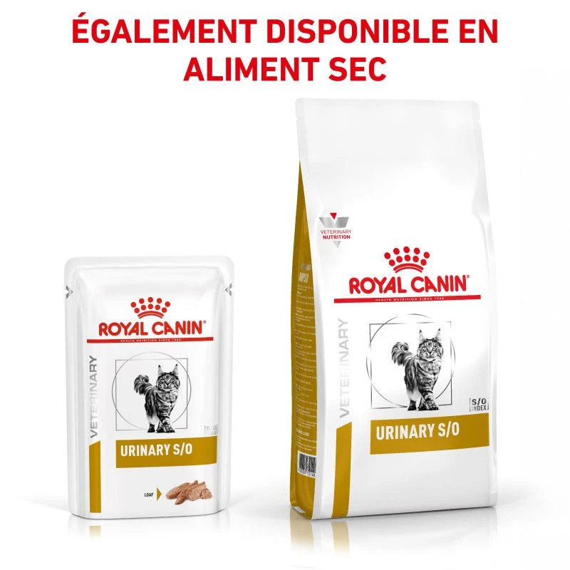 Les sachets repas Cat Urinary S/O Mousse de Royal Canin sont spécialement formulés pour les chats adultes et séniors qui ont des problèmes urinaires. Ils soutiennent le système urinaire de votre chat et participent à améliorer son bien-être général.