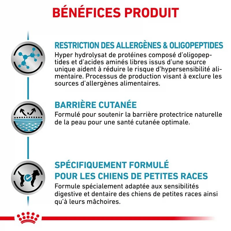 Les croquettes Dog Anallergenic Royal Canin Small Dog sont destinées à la prise en charge nutritionnelle des allergies alimentaires et cutanées chez le chien.