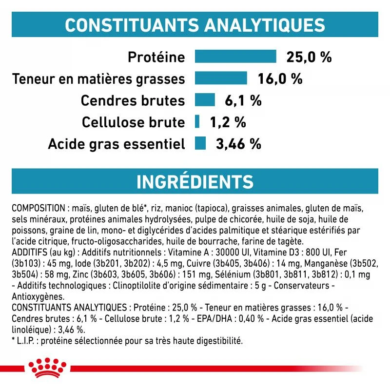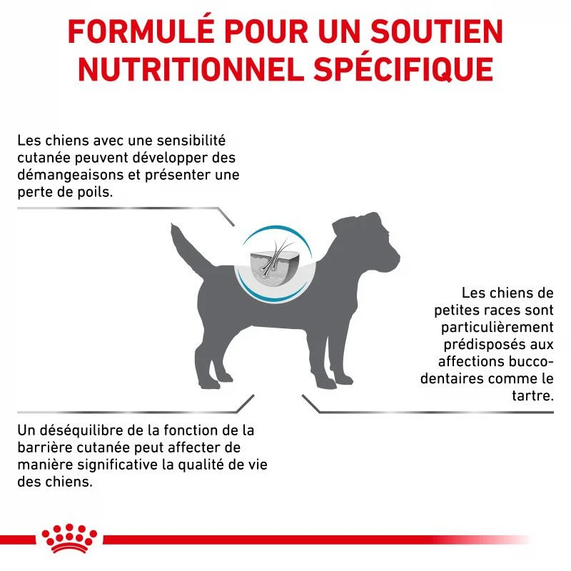 Les croquettes Dog Skin Care Adult Small Dog sont destinées à la prise en charge nutritionnelle des troubles cutanés chez le chien. Veuillez consulter votre vétérinaire avant utilisation.