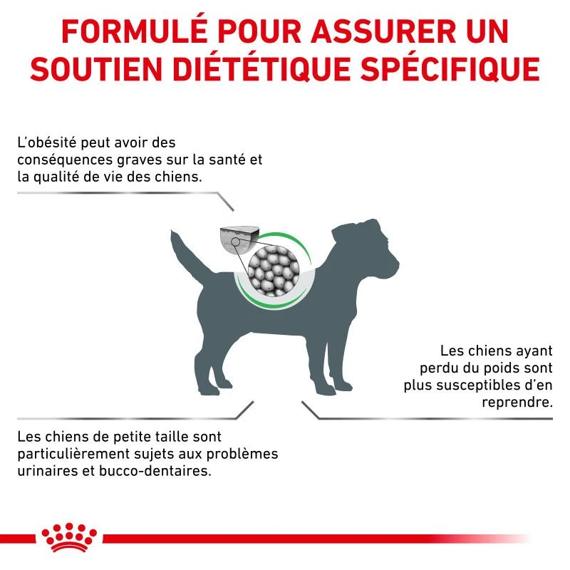 Les croquettes Royal Canin Satiety Weight Management Small Dogs sont destinĂ©es Ă la prise en charge nutritionnelle du surpoids et de l’obĂ©sitĂ© chez le chien de petite race. Veuillez consulter votre vĂ©tĂ©rinaire avant utilisation. Â