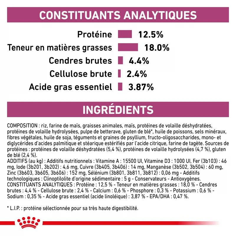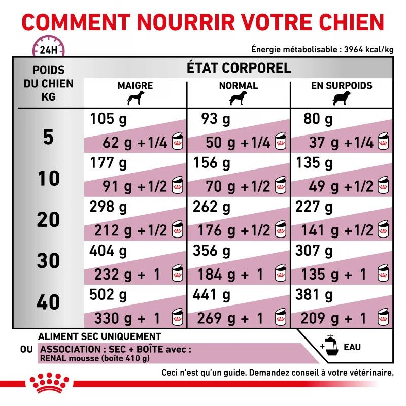 Cet aliment est destinĂ© Ă la prise en charge nutritionnelle des problèmes cardiaques et rĂ©naux chez le chien. Veuillez consulter votre vĂ©tĂ©rinaire avant utilisation. Â