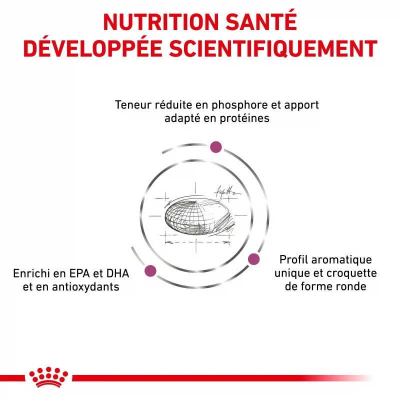 - Les croquettes Royal Canin Veterinary Health Nutrition Cat Renal améliorent la perfusion rénale.
