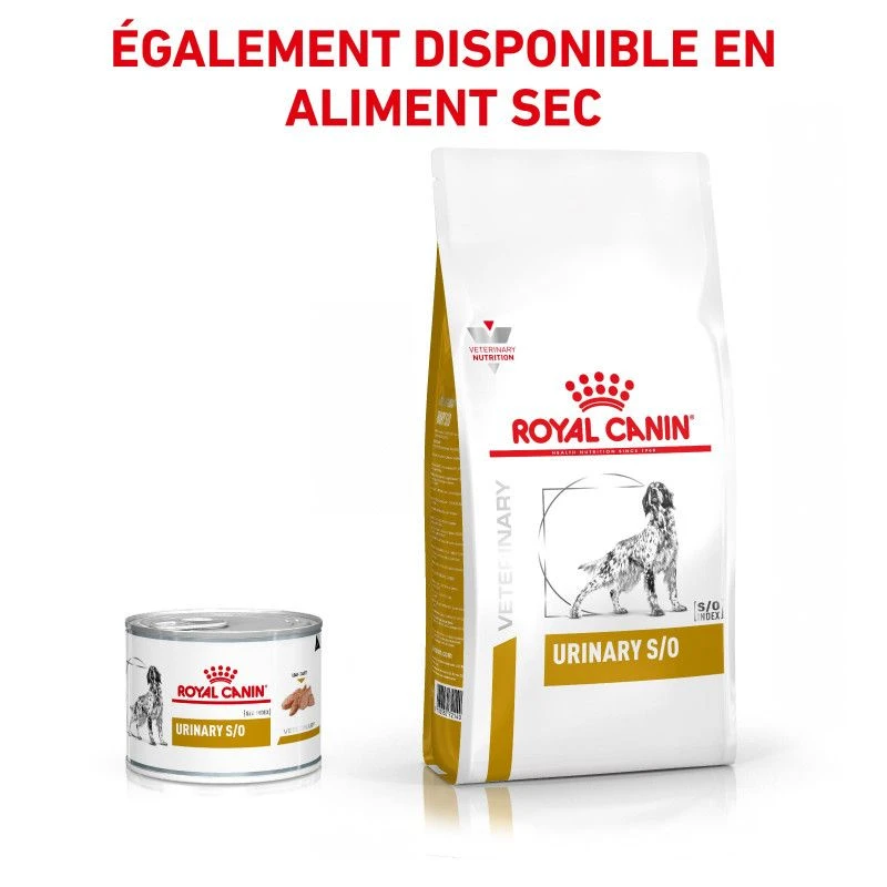 Les boîtes Veterinary Health Nutrition Dog Urinary S/O, de la marque Royal Canin sont destinées à la prise en charge nutritionnelle des problèmes urinaires chez le chien. Veuillez consulter votre vétérinaire avant utilisation.