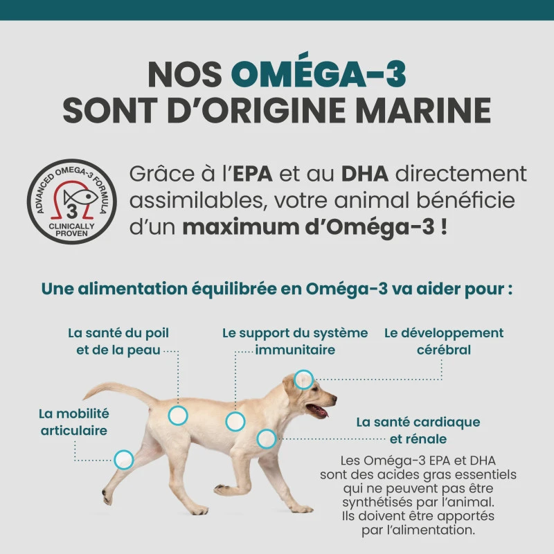- Soutiennent les articulations grâce aux Omégas-3 d’huile de poisson et de krill.