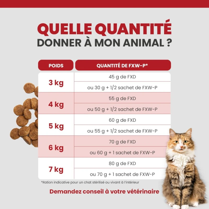 SPECIFIC FXW-P ADULT c’est une alimentation complète et Ă©quilibrĂ©e pour les chats adultes chats stĂ©rilisĂ©s ou d’intĂ©rieur, formulĂ©e par des vĂ©tĂ©rinaires.Â